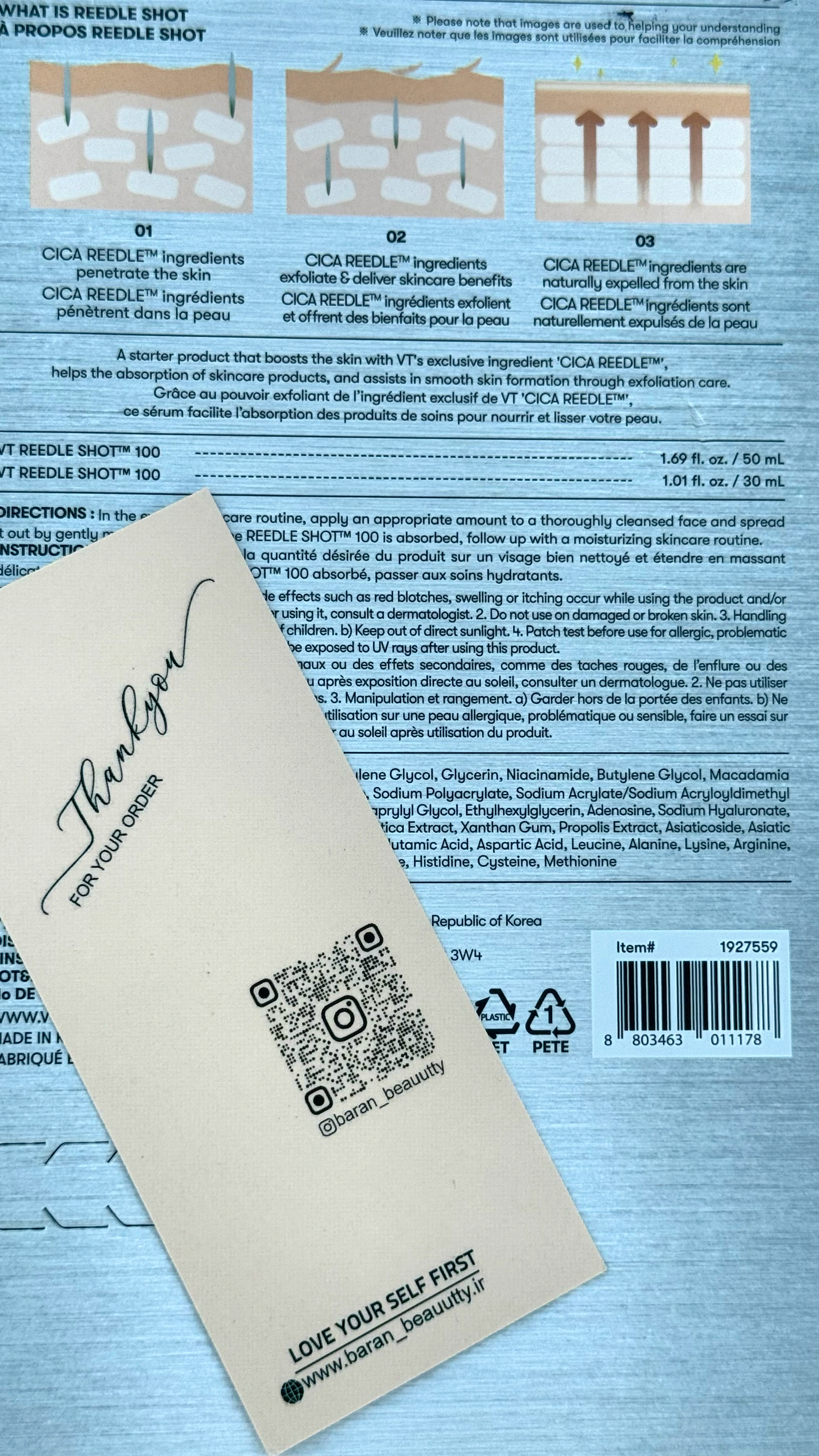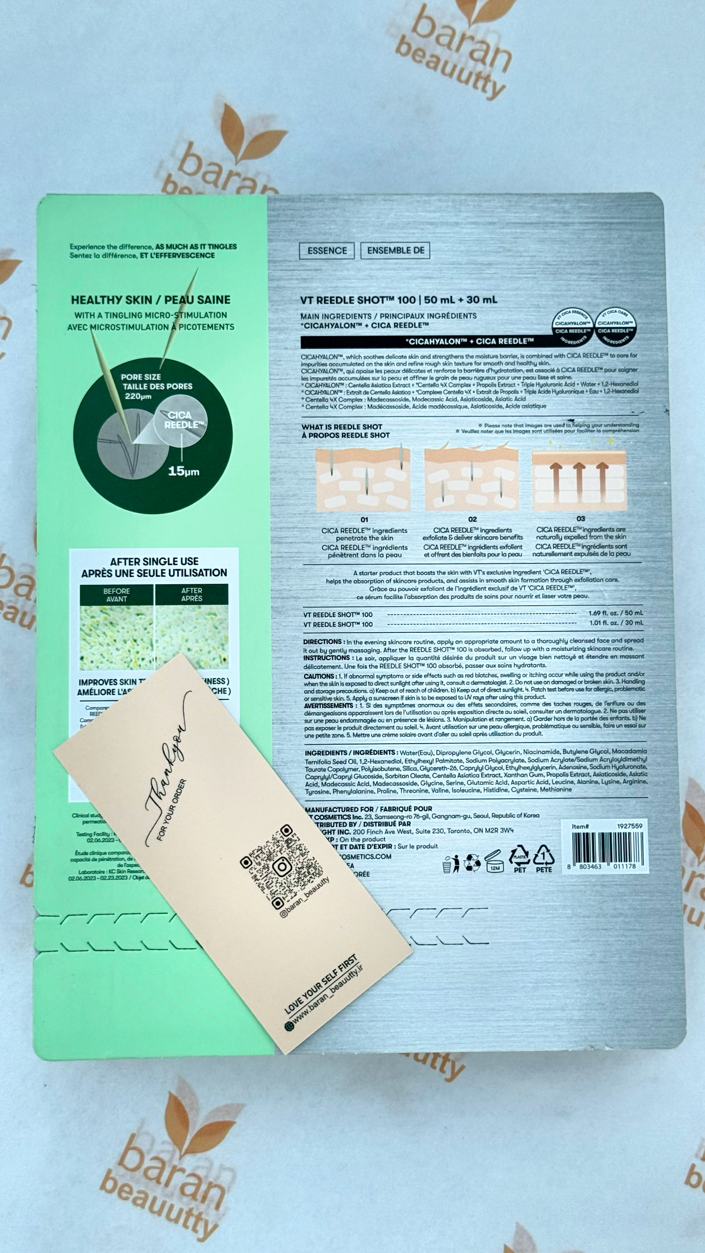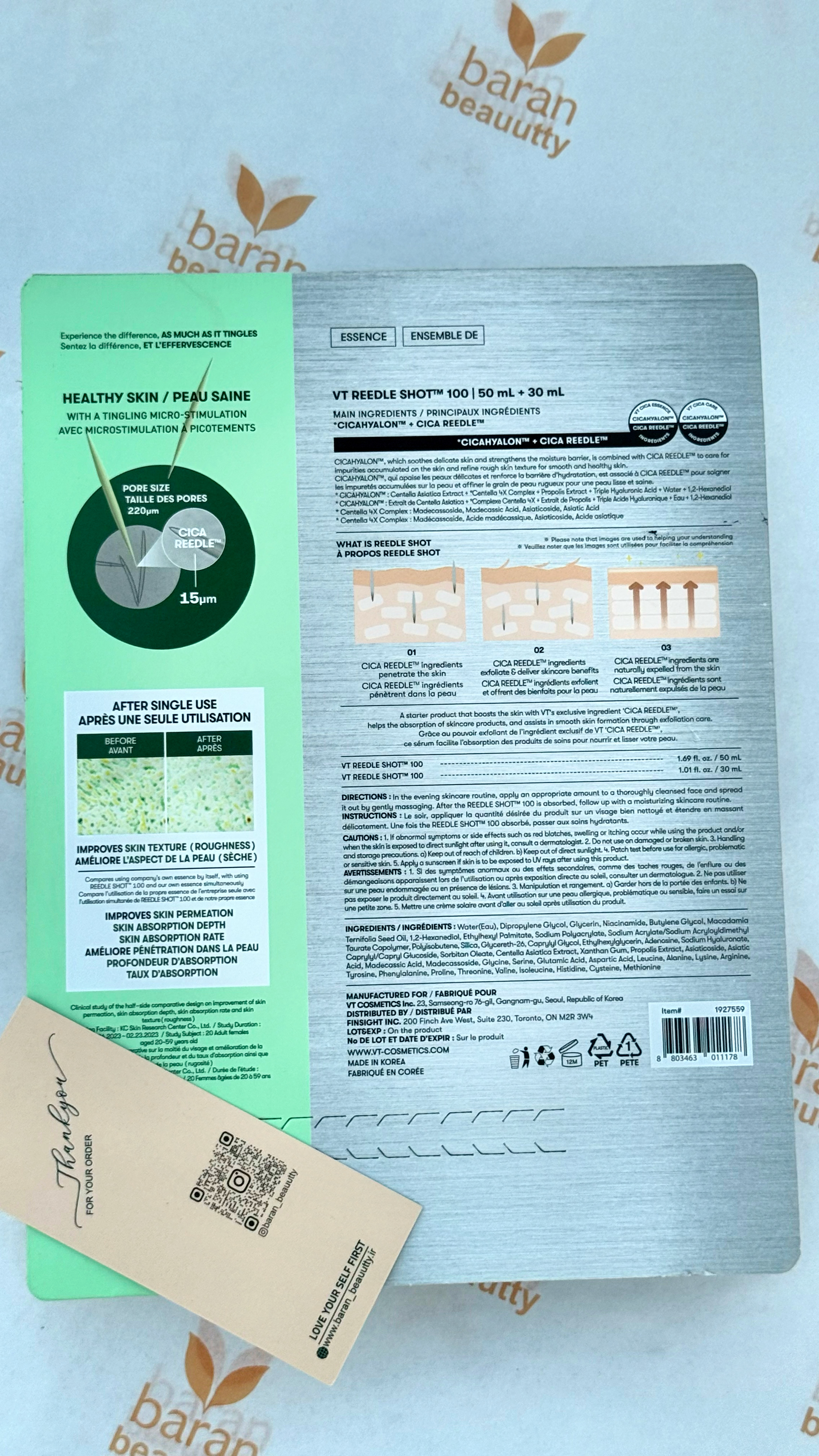 VT Reedle Shot یک سرم تخصصی و نسل جدید درمان پوستی است که با تکنولوژی میکرو اسپیکولهای سیلیکایی طبیعی اثر مشابه میکرونیدلینگ را بدون دستگاه و بدون درد ایجاد میکند.