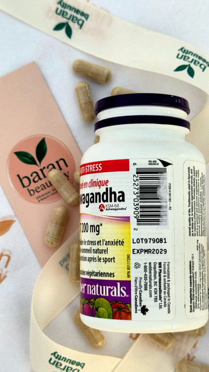 🧘♀️ آشوگاندا Webber Naturals 7200 mg (KSM-66) | مکمل کاهش استرس با تأییدیه NPN کانادا
