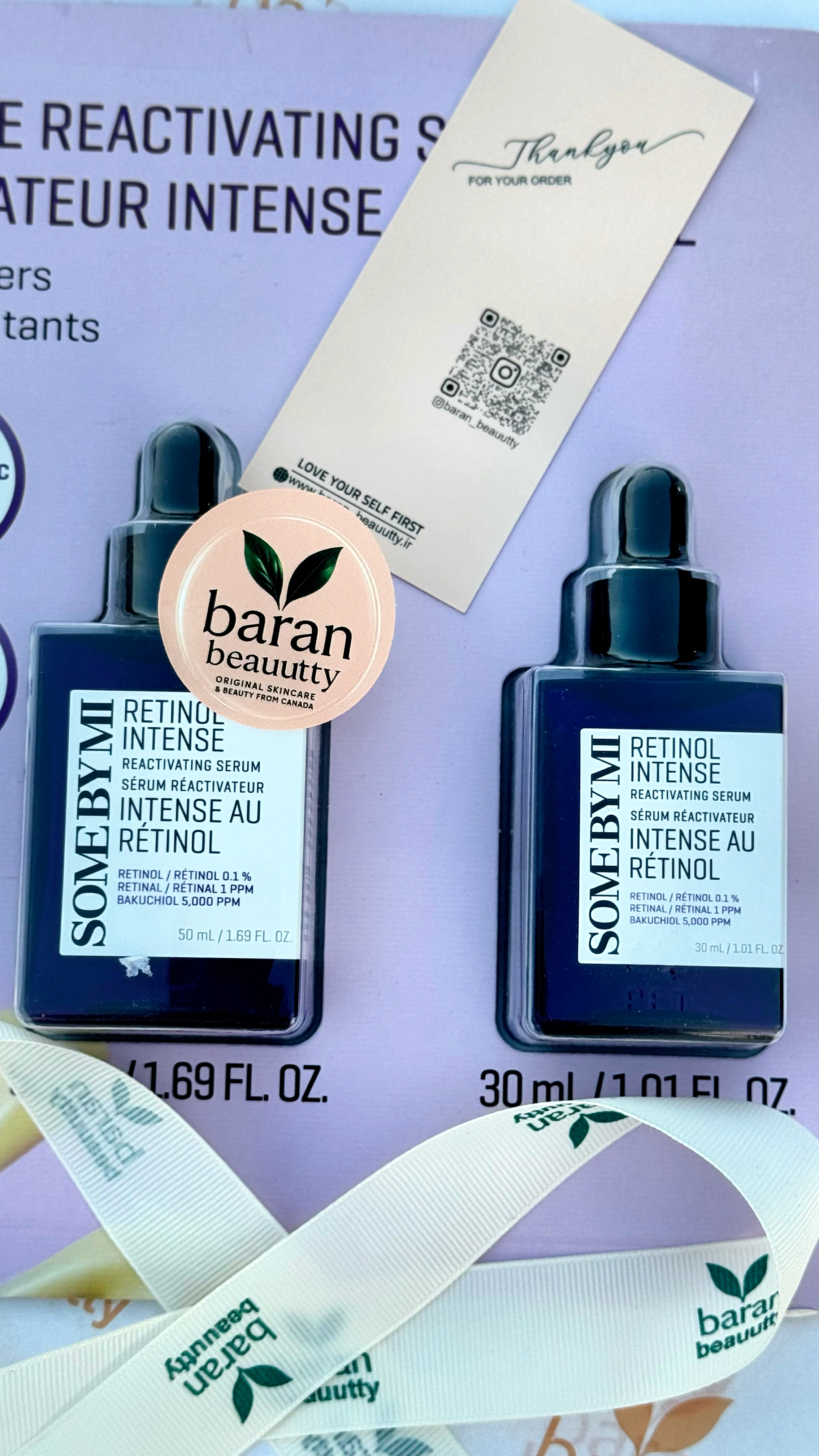 SOME BY MI Retinol Intense Reactivating Serum Set ترکیب علمی و بسیار حسابشدهای از رتینول، رتینال و باکوچیول ارائه میدهد تا هم نتیجه ضدپیری واقعی ببینید و هم پوستتان آرام و متعادل بماند.