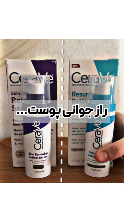 سرم «رتینول »برند امریکایی «CeraVe». سرم بینظیر پوستی برای جوانسازی پوستت پوست چرب و مستعد اکنه (رنگ ابی)حاوی : هیالورونیک اسید /نیاسینامید /و سه سرامید ضرروری پوست خشک (رنگ بنفش)حاوی : هیالورونیک اسید /اسکوالان /و سه سرامید ضروری چه کارایی هایی داره ؟ پوست صاف و یکدست /روشن کننده /ضد لک /ضد پیری /از بین برنده ی خطوط ریز پوستی /کاهش سایز منافذ باز / لایه بردار نیستن ترکیبات غنی بکار رفته در برند سروای علت : ایمن ترین بودن این سرم رتینول ،از نظر اسیب به سد رطوبتی پوستی . مبدا :